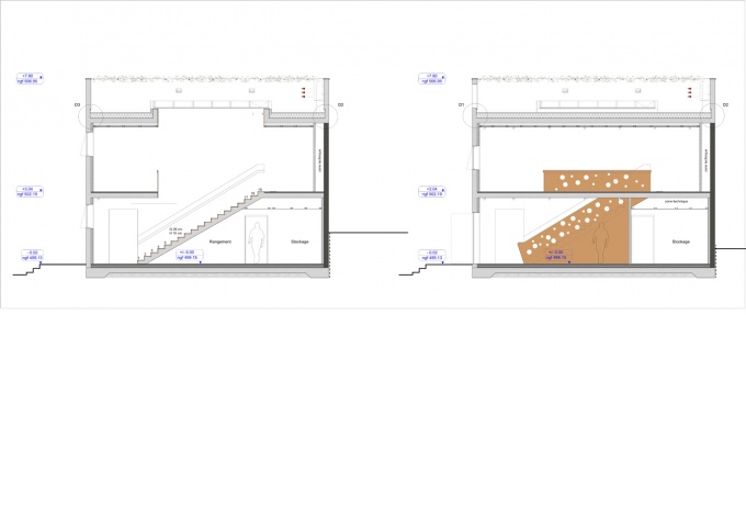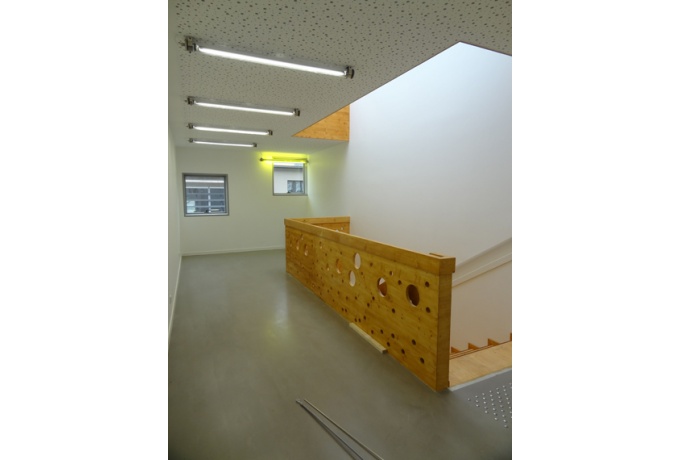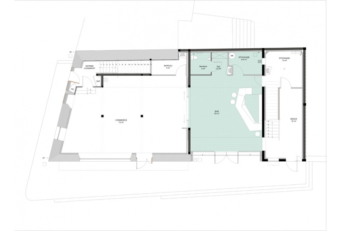 L’incertitude de l’usage des lieux devient l’une des forces du projet (au moins deux exploitants se sont succédés durant la réalisation du projet) dont l’organisation peut correspondre à de nombreuses configurations. Les différents espaces peuvent en effet être séparés ou réunis ce qui permet d’envisager une utilisation des lieux très souple avec un ou plusieurs exploitants. Cette réponse à l’instabilité du sujet se traduit par la juxtaposition d’éléments bâtis de nature différente pouvant fonctionner ensemble ou séparément. Ce dispositif permet une mise à distance de la bâtisse historique lui permettant de retrouver une certaine stature.