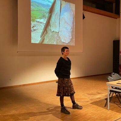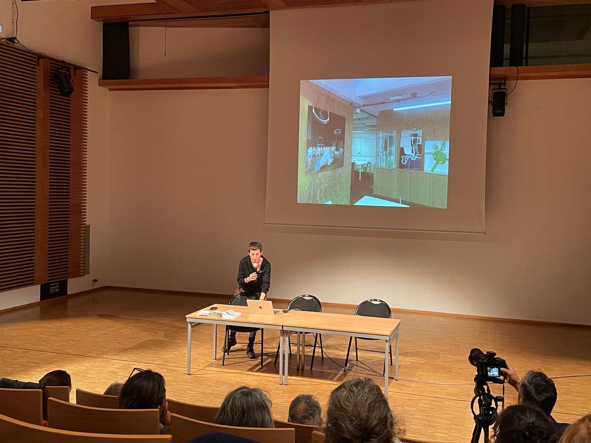 La conférence évoque le pas de côté proposé par le programme « Fenêtres sur le Paysage » de Derrière le Hublot et développe plus largement son rapport d’architecte à la création. L’œuvre d’art refuge « Sous les Lauzes » est en cours de construction au bord du GR65 (chemin de Compostelle), sur la commune de Bessuéjouls. Ce projet d’œuvre d’art refuge est porté par la communauté de communes Comtal Lot Truyère.