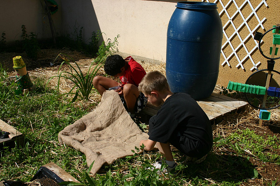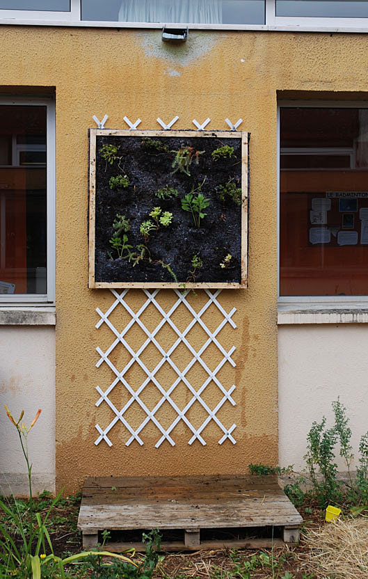 A l’école du Tricot, les couloirs qui desservent les salles de classes entourent un patio austère et peu investi. Plusieurs années de travail avec 2 classes de l’école du tricot ont permis la création d’un jardin dans ce patio afin de donner un peu plus de vie à ce lieu.