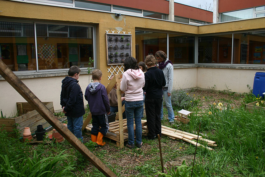 Le projet évolue chaque année pour répondre aux envies et besoins des élèves. Au fil des années : plantations, murs végétaux, mobilier en palette, et bassin – ont été imaginés, conçus et fabriqués par les élèves. Télécharger la fiche-pedagoqique.