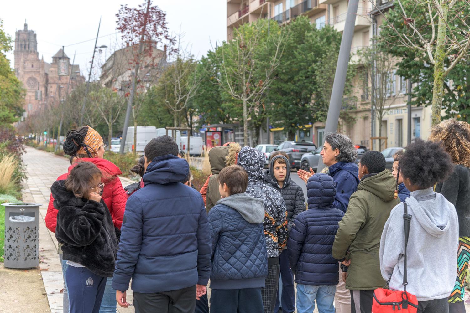Cette lecture de paysage destinés aux scolaires a été réalisée dans le cadre du dispositif «Levez les yeux» des Journées Nationales de l’Architecture.