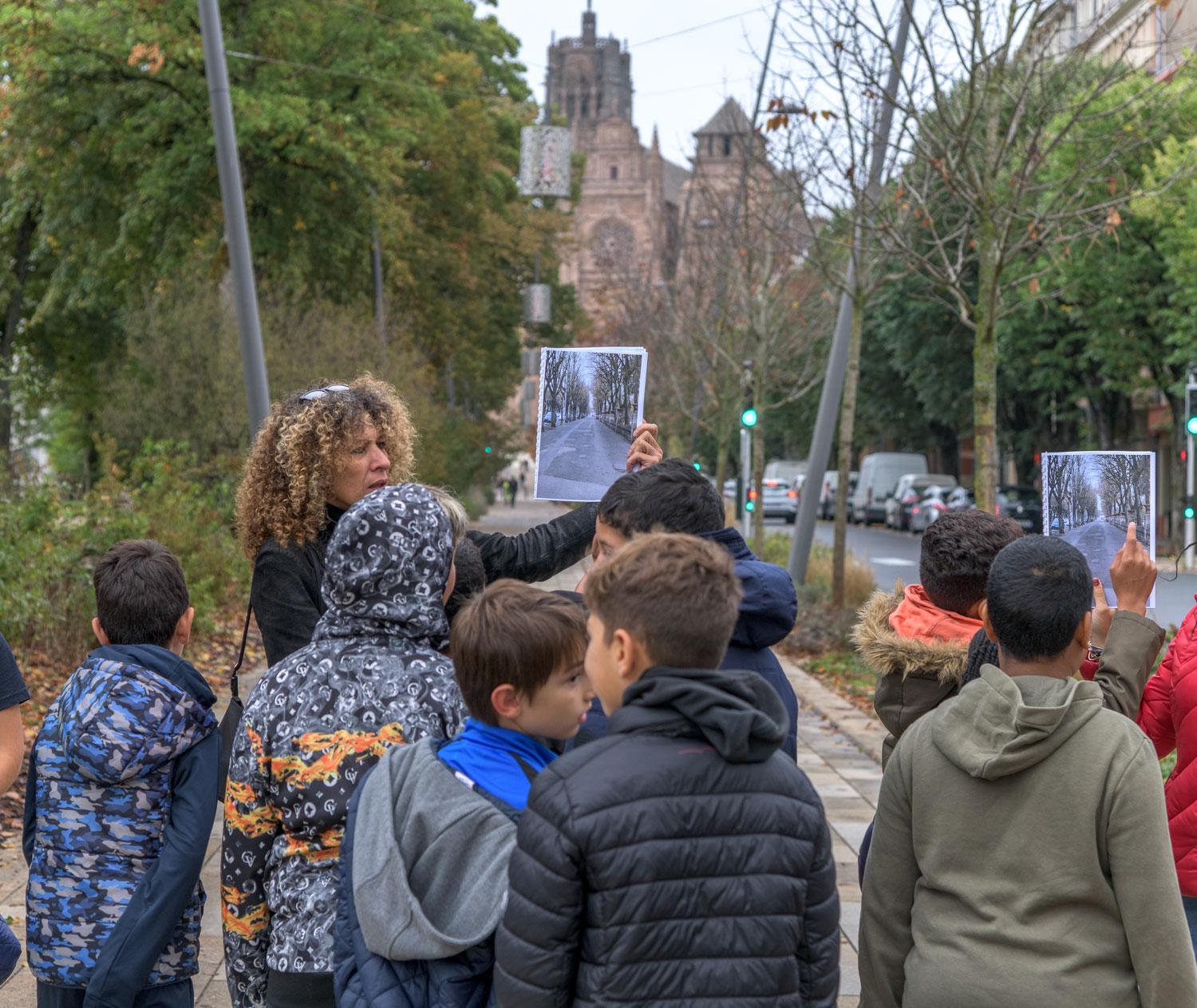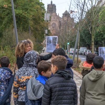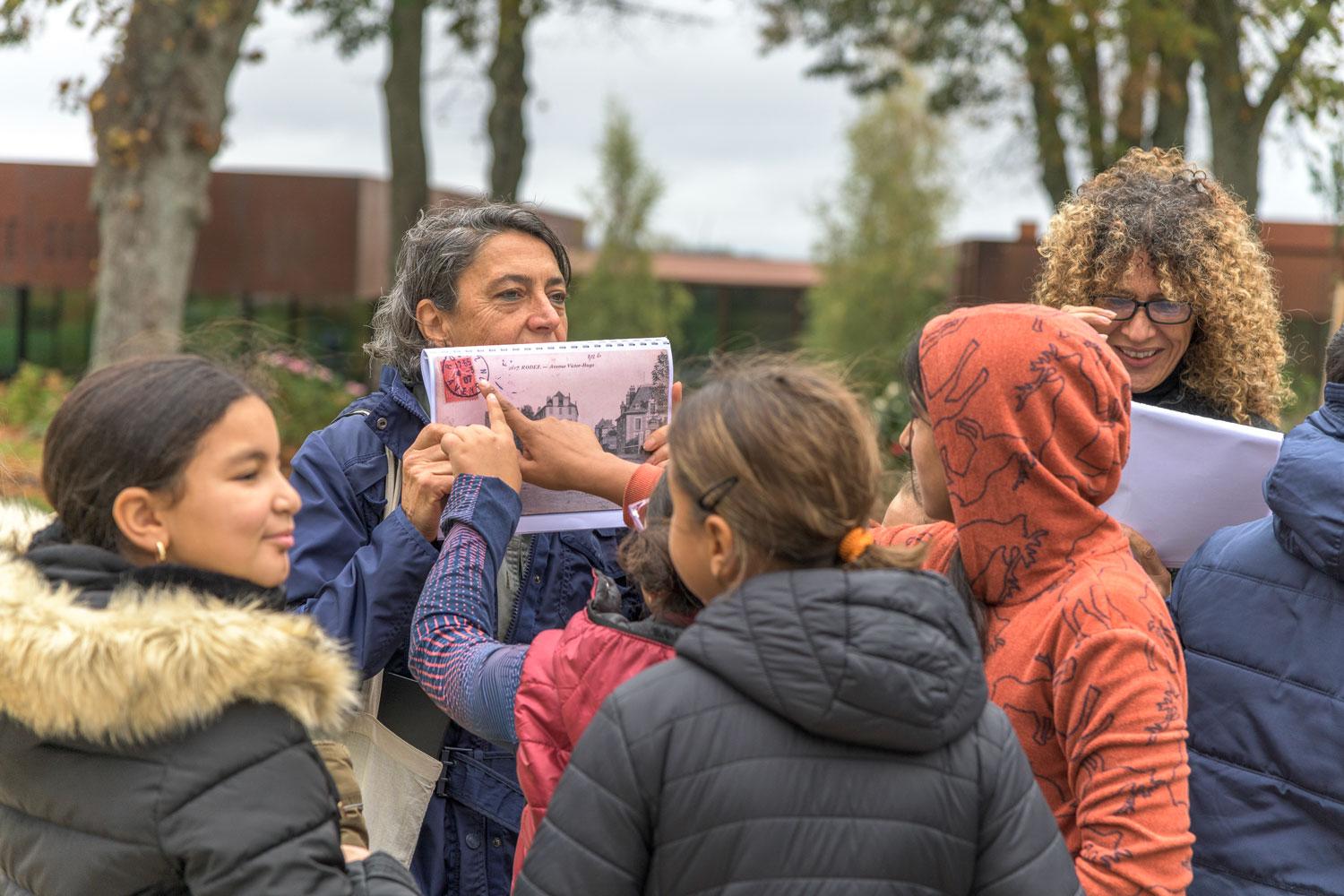 A partir d’un cahier de photos et de cartes postales de différentes époques, les élèves doivent retrouver aujourd’hui les lieux évoqués. L’objectif est de prendre conscience des évolutions successives du quartier.