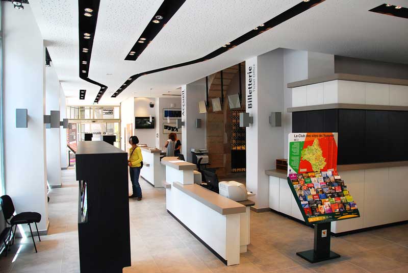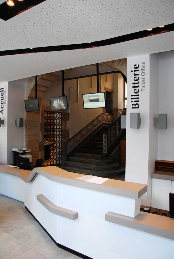 Eric Gadou, architecte dplg, a rendu vie à cet ancien bâtiment de la place de la Cité pour le transformer en lieu d’accueil et d’information. Plusieurs espaces ont été pensés pour accueillir groupes, personnes en situation de handicap et enfants dans les meilleures conditions. Le mobilier, dessiné par l’architecte, guide le visiteur vers l’accueil situé devant l’escalier monumental. En façade, les anciennes arcades ont été réhabilitées pour accueillir affichages et outils promotionnels sur le territoire.