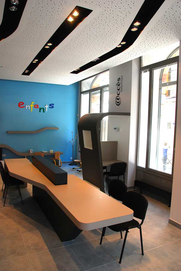 Installé place de la Cité, l’office a été aménagé en partie dans les anciens locaux de la CCI. L’immeuble voisin, après reconstruction a été annexé et abrite maintenant l’entrée de cet équipement.