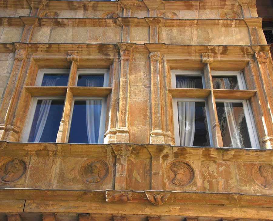 Le placage de pierre est un système assez peu répandu, employé au XVIe siècle pour les maisons aristocratiques et bourgeoises du centre de Rodez.